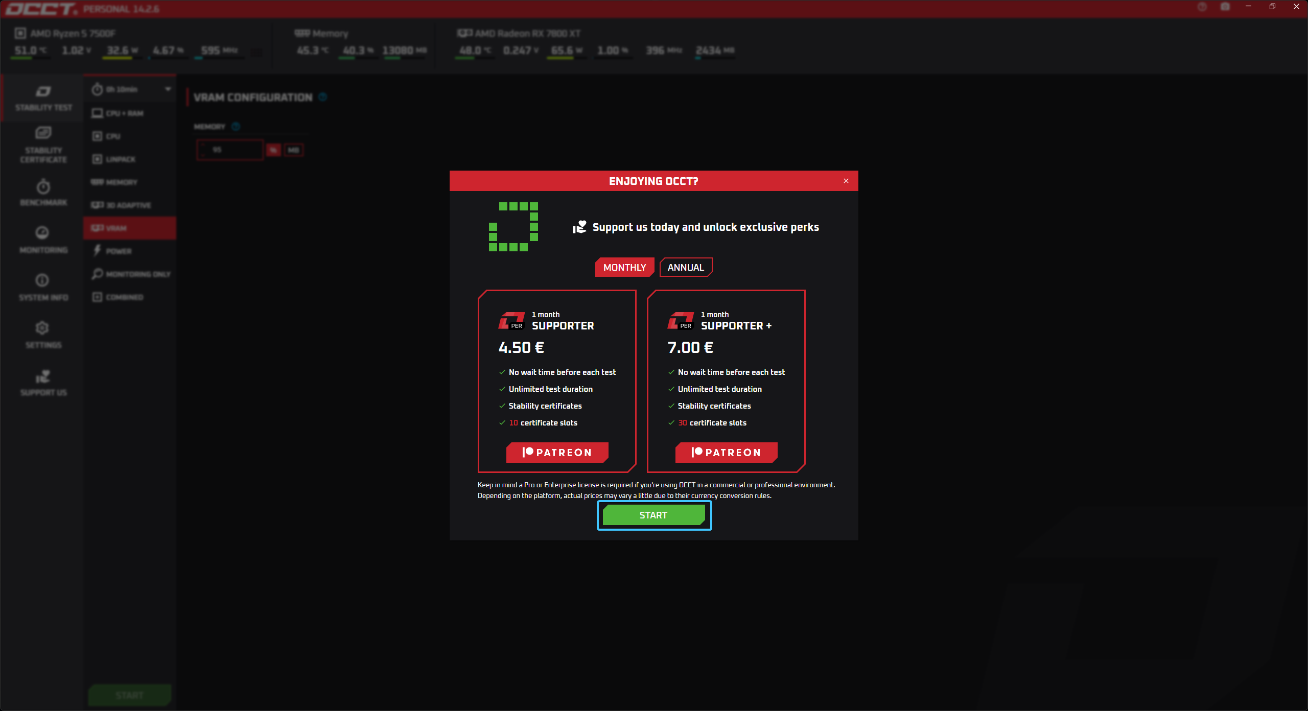 9. Появится окно поддержки. Обратите внимание, что финансовая поддержка для использования данного приложения в личных целях не обязательна. Вновь нажмите кнопку «Start» для запуска.