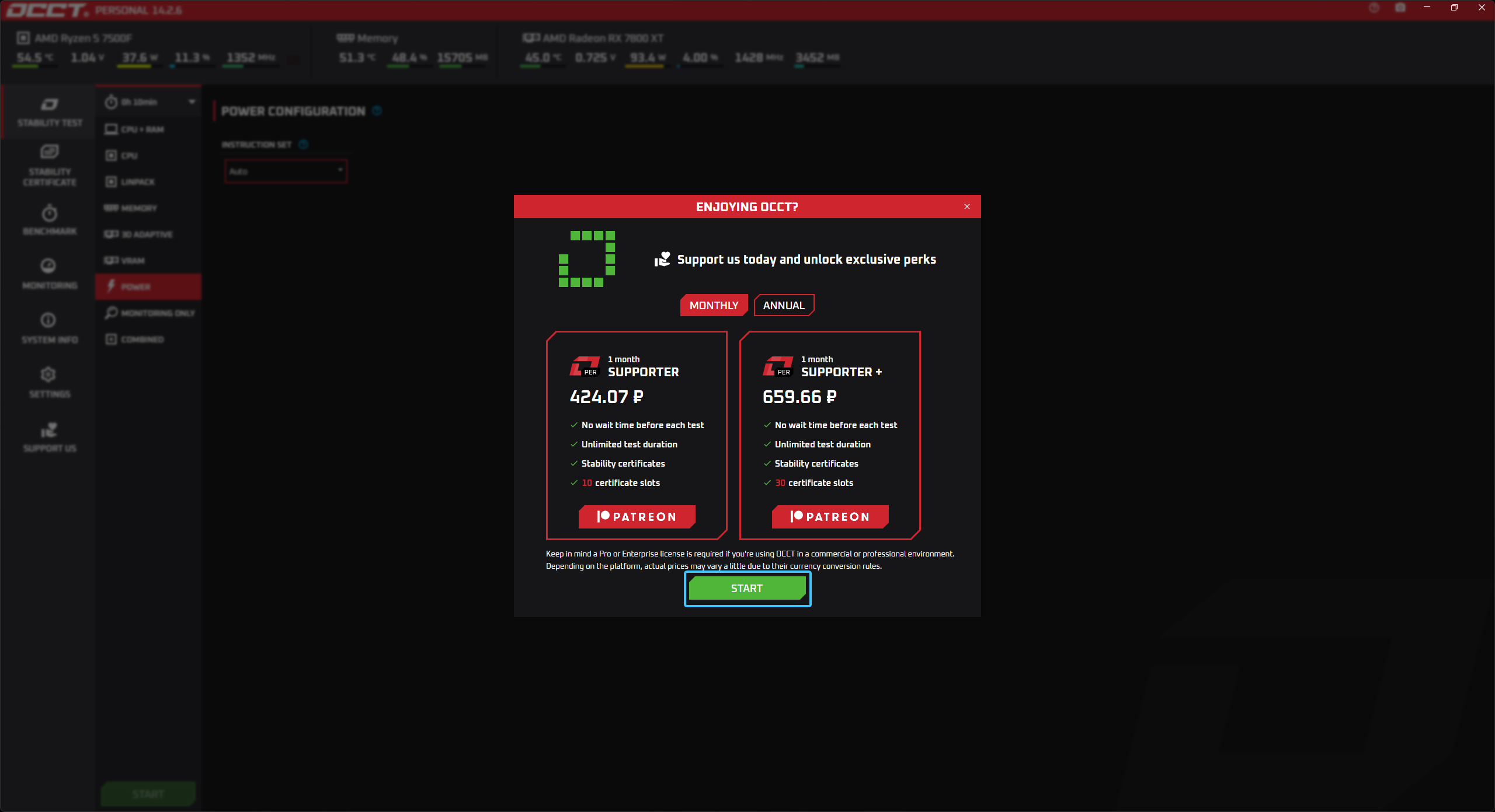8. Появится окно поддержки. Обратите внимание, что финансовая поддержка для использования данного приложения в личных целях не обязательна. Вновь нажмите кнопку «Start» для запуска.
