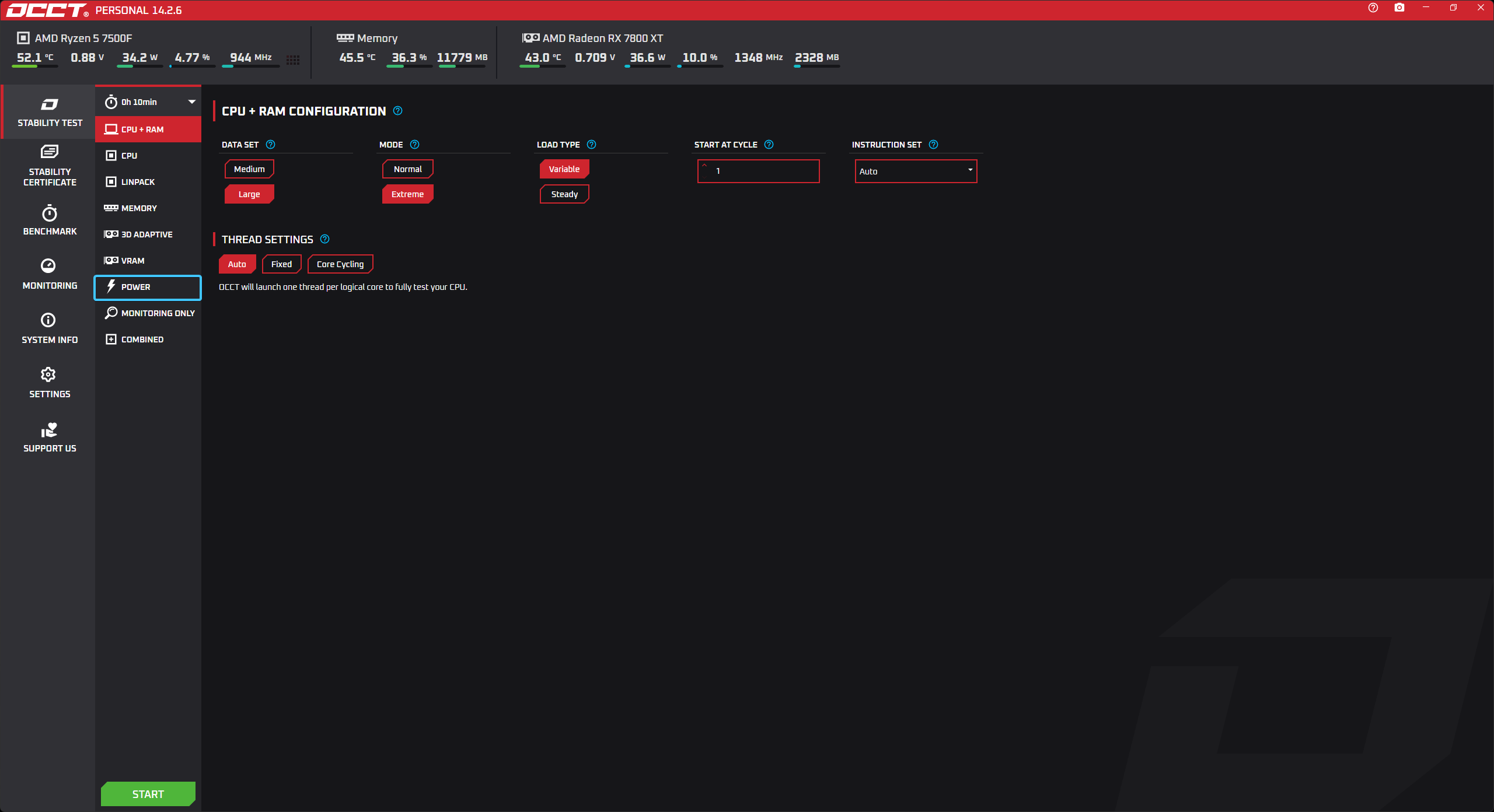 9. После этого, тестирование «POWER» будет запущено. Дождитесь его полного завершения.