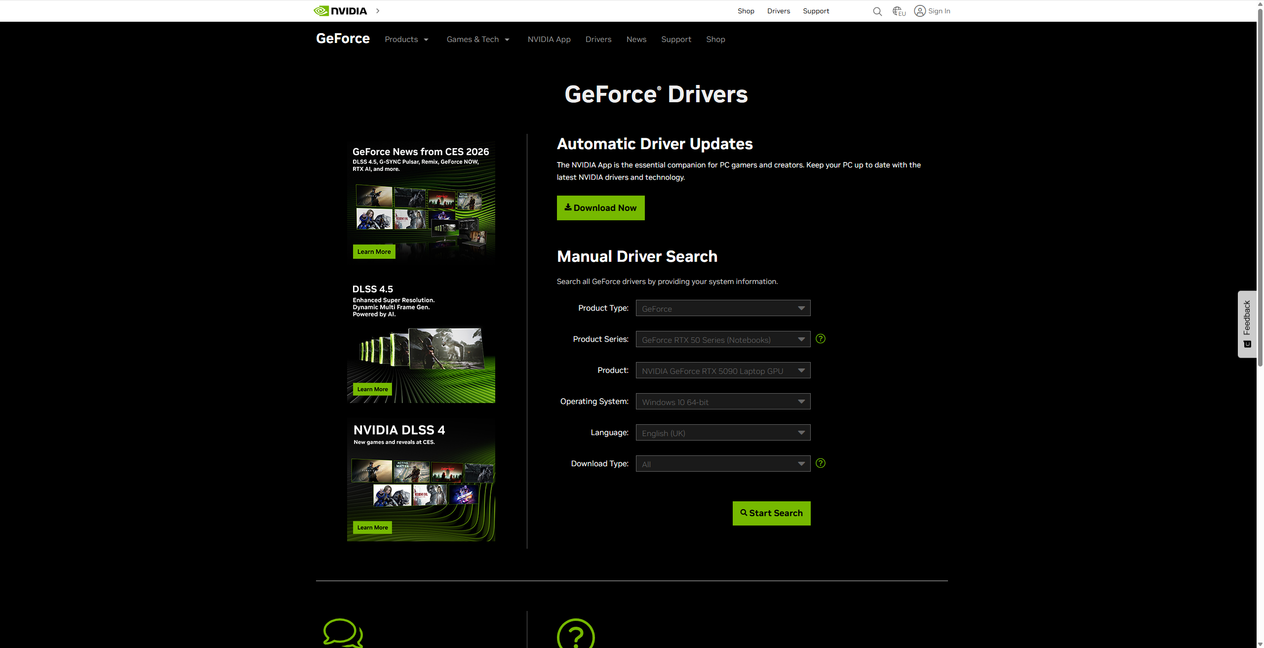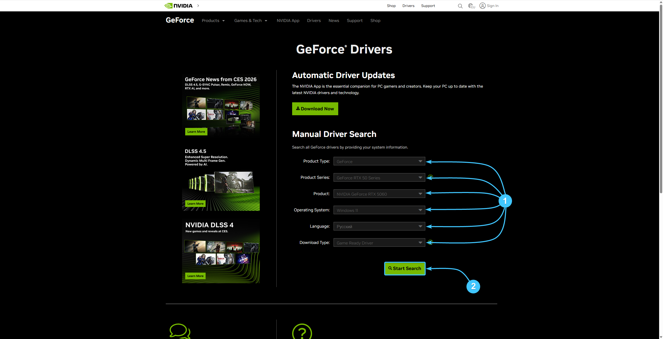 1. Перейдите на страницу с драйверами, которая располагается на официальном сайте «NVIDIA».
