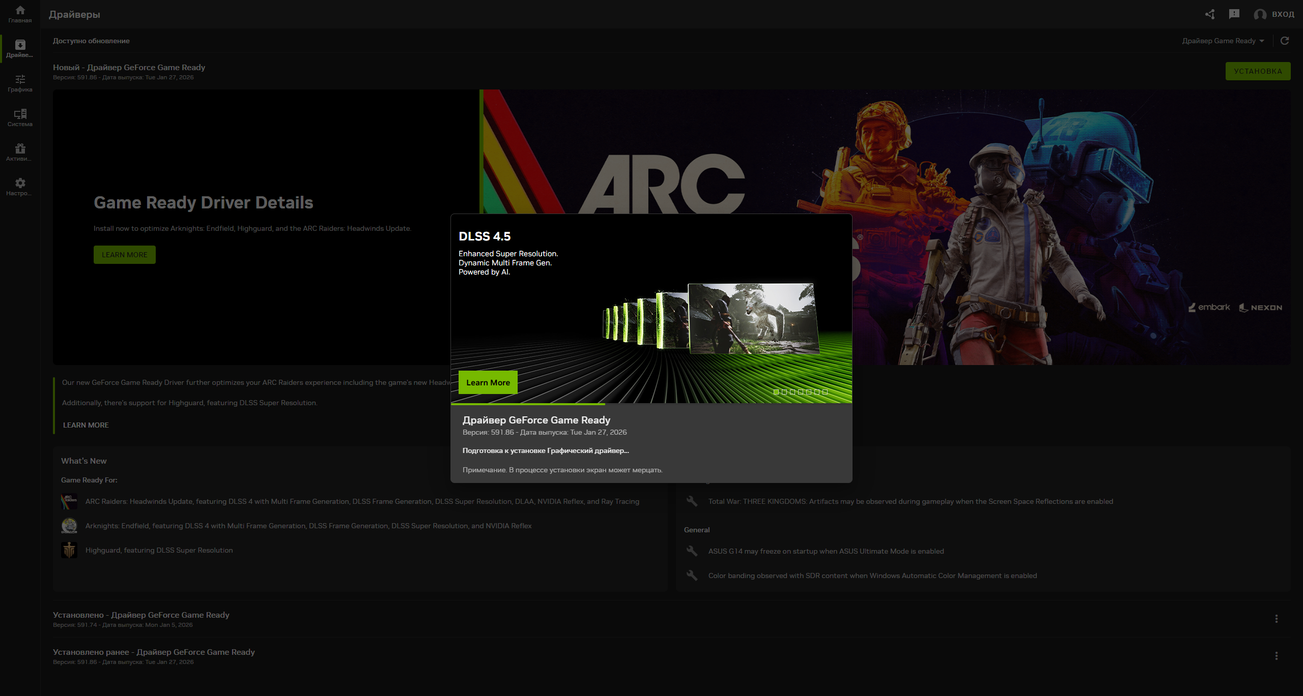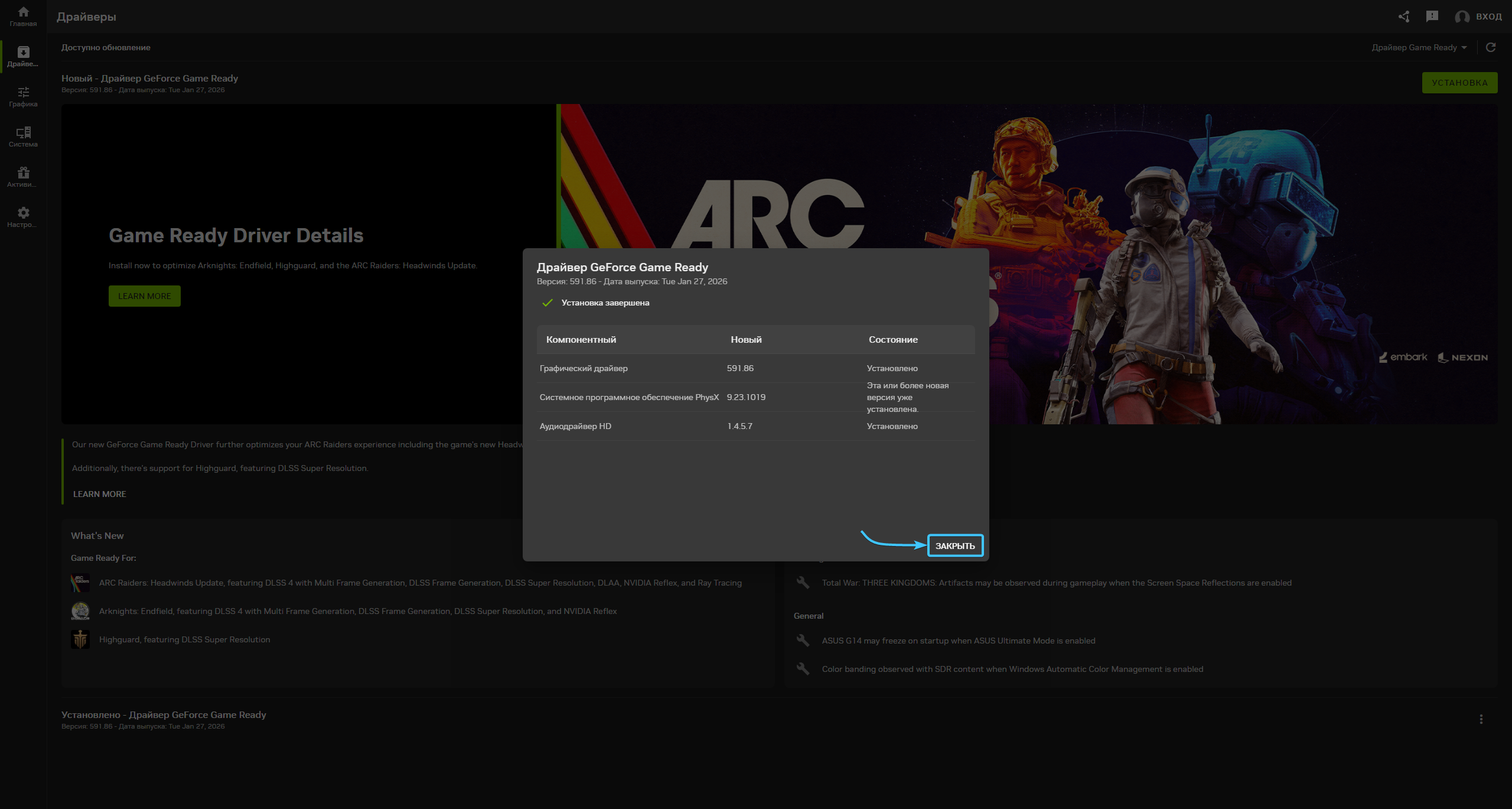 8. Дождитесь завершения скачивания драйвера на видеокарту. После этого нажмите «Установка».