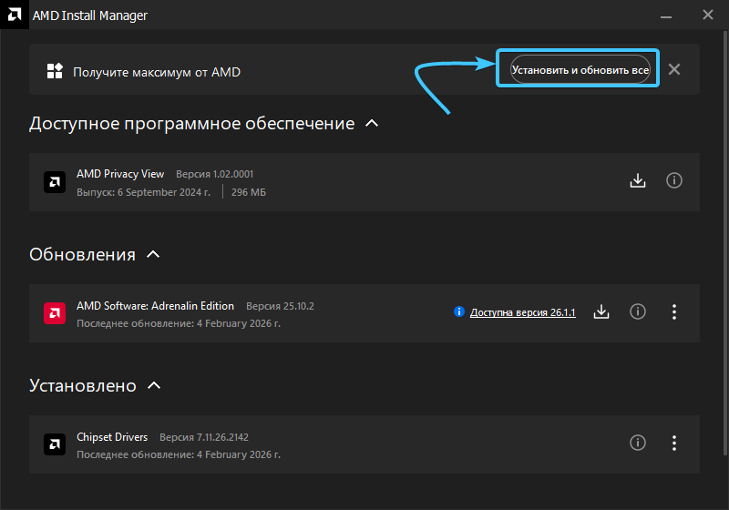 2. Откроется новое окно с доступными обновлениями. Нажмите кнопку «Установить и обновить все».