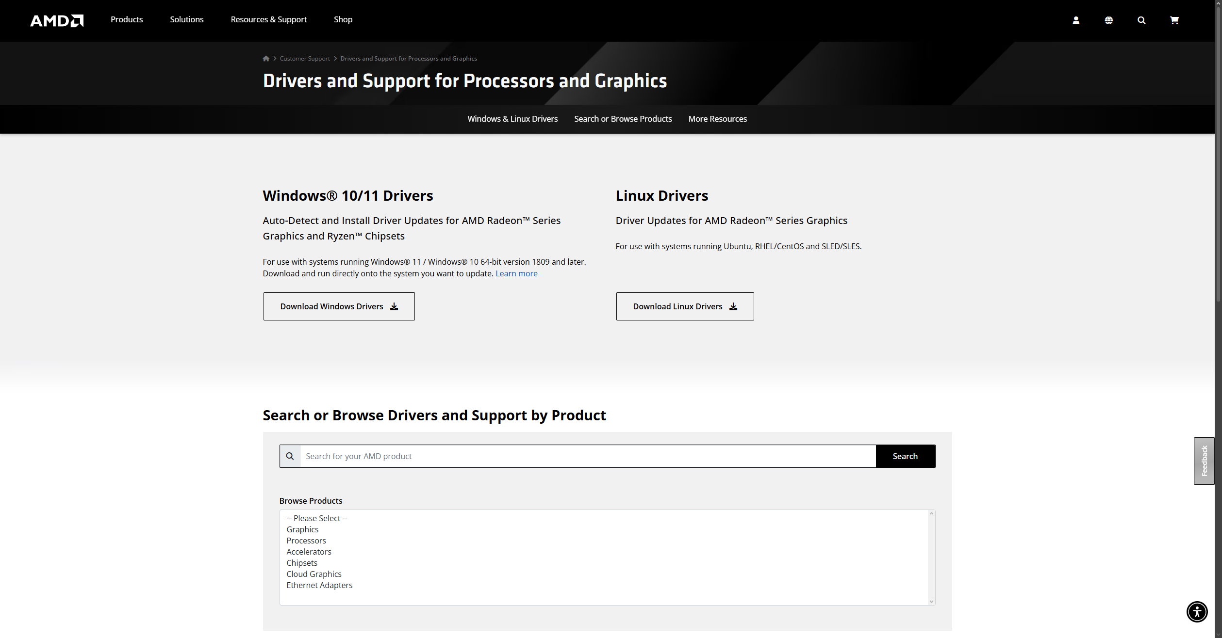 1. Перейдите на страницу с драйверами, которая располагается на официальном сайте «AMD».
