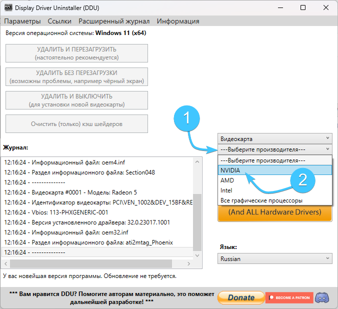 8. Нажмите «Выберите производителя». В появившемся списке выберите производителя вашей видеокарты.