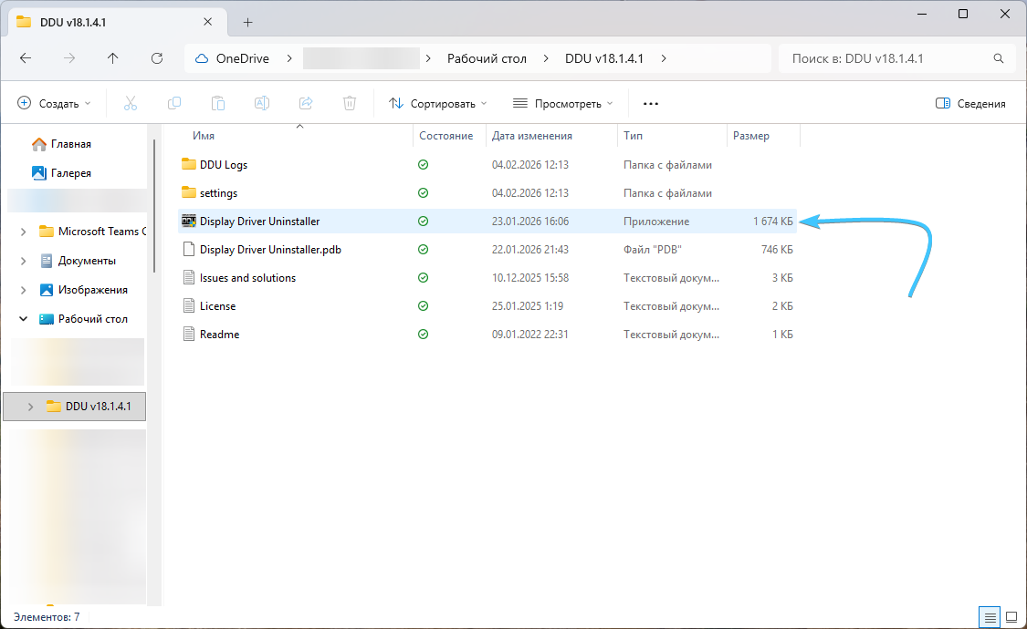 5. Откройте появившуюся на рабочем столе папку и запустите приложение «Display Driver Uninstaller».