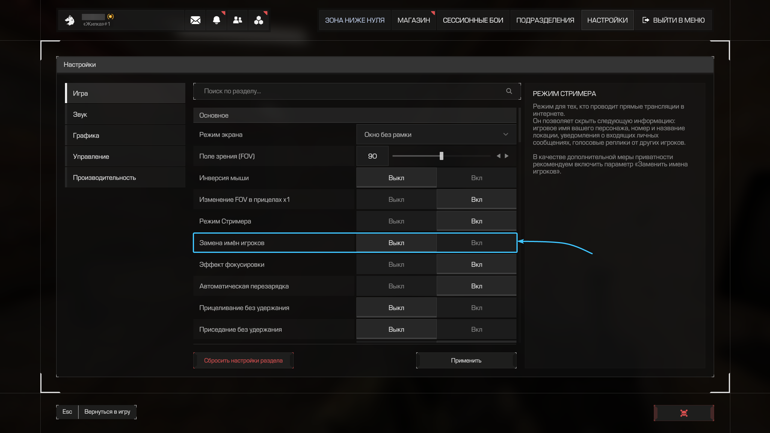 Вместе с режимом стримера рекомендуем включать параметр «Заменить имена игроков».