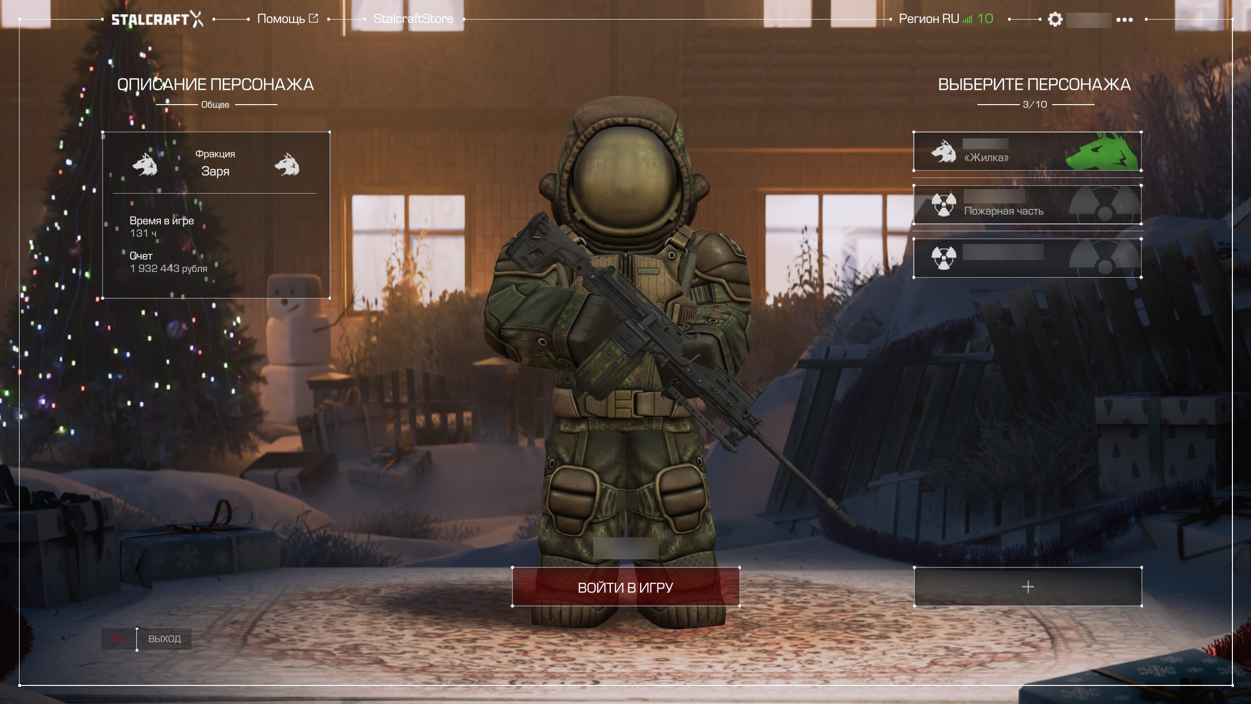 1. Запустите игру «STALCRAFT: X». В главном меню выберите персонажа и зайдите на сервер.