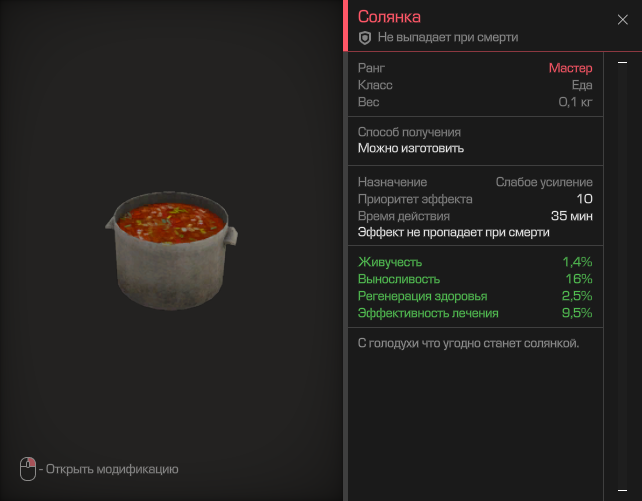 Добавлено отображение приоритета эффекта в описании еды и медикаментов.
