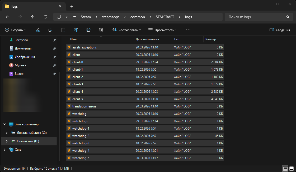 Игра «STALCRAFT: X» на платформе «EXBO» может создавать следующие виды лог-файлов: