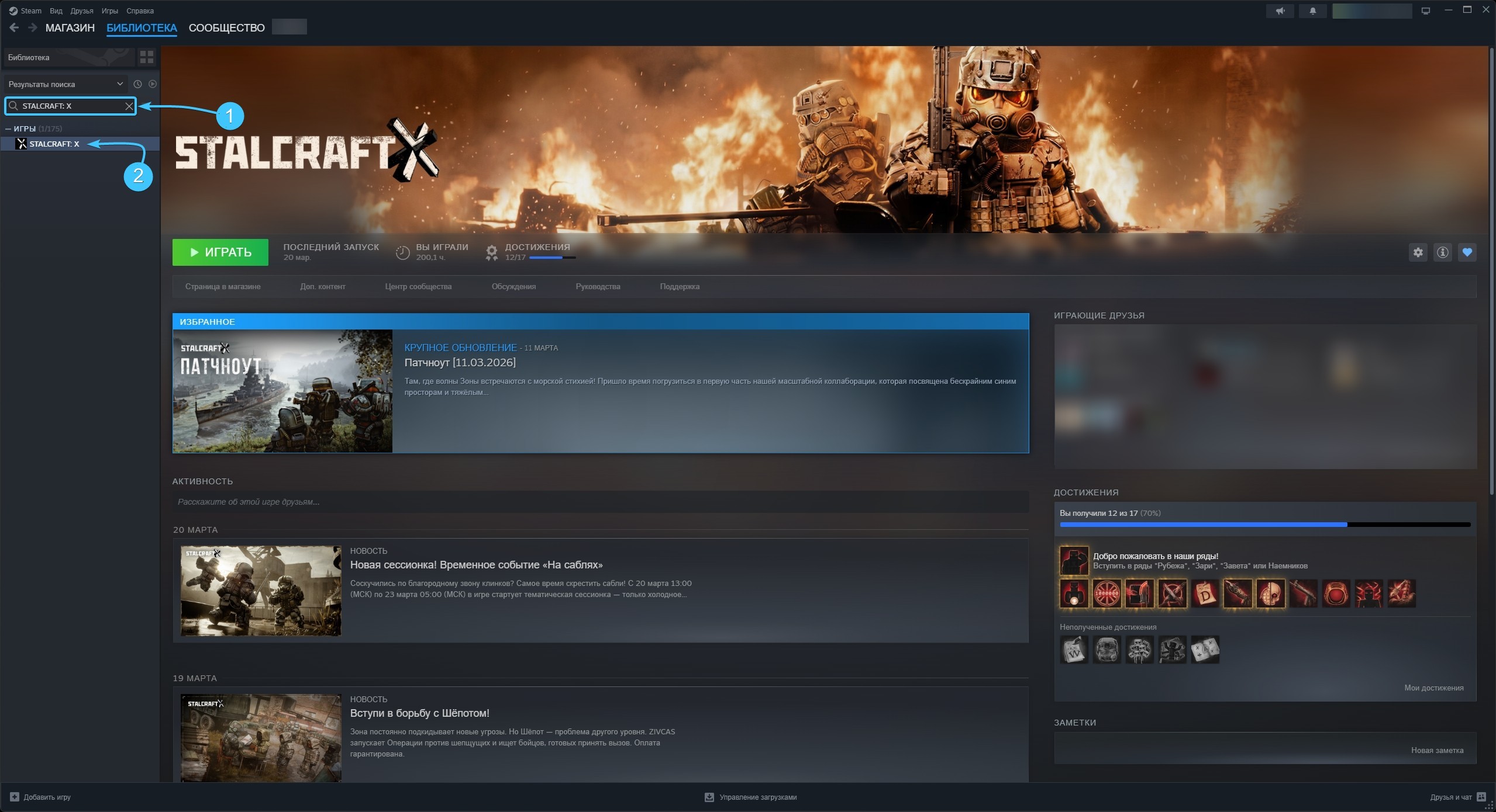 2. Сверху откройте раздел под названием «Библиотека». В списке слева отыщите игру «STALCRAFT: X».