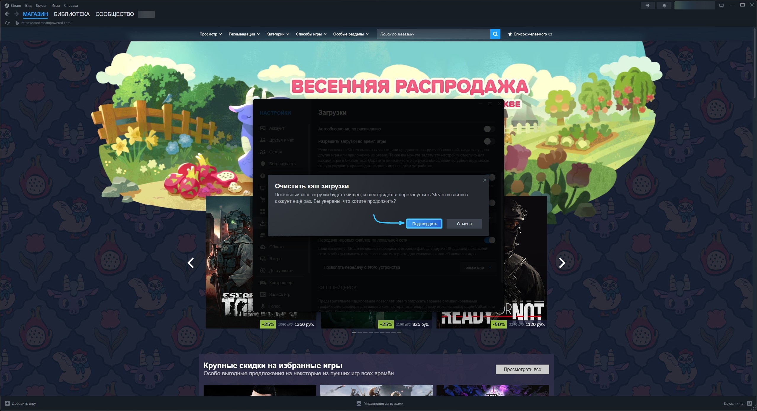 6. После этого очистка кэша загрузки приложения «Steam» будет завершена. Можно заходить в игру.