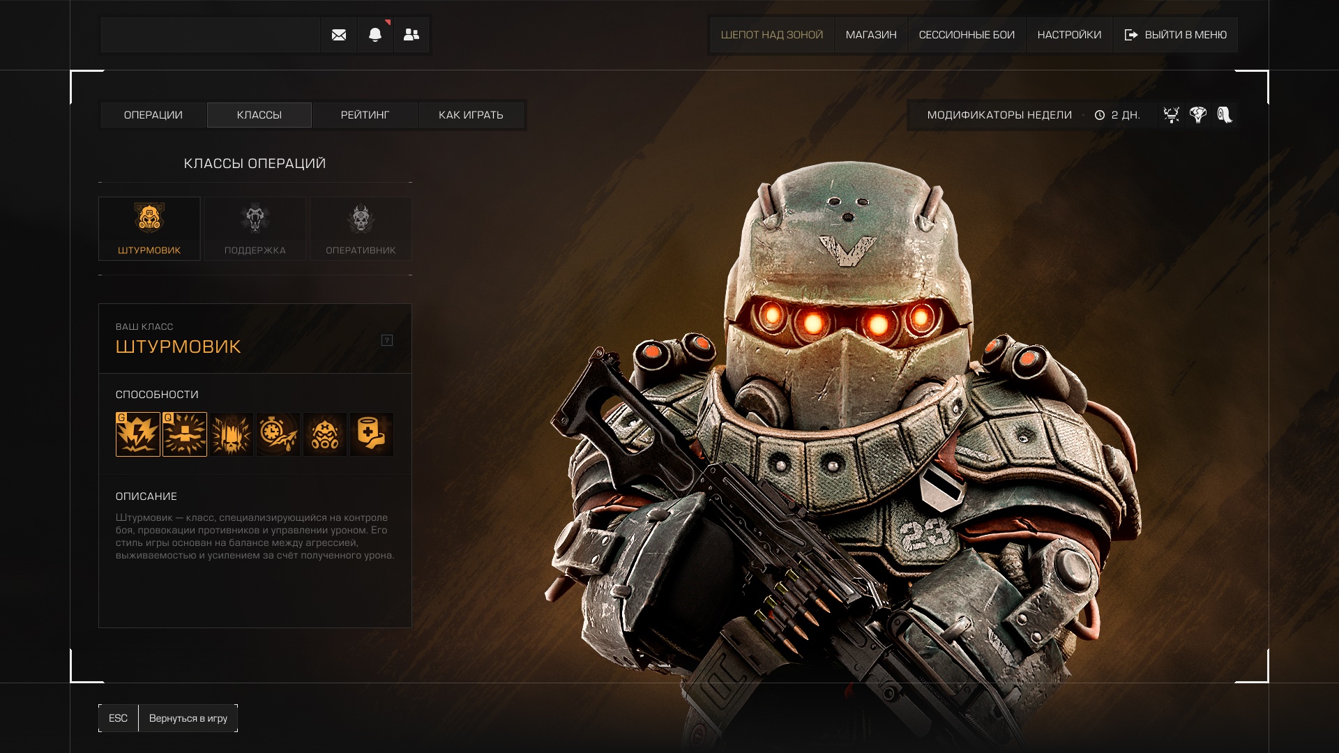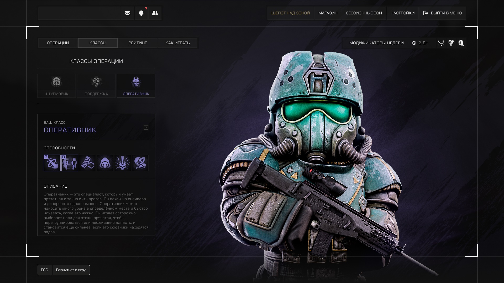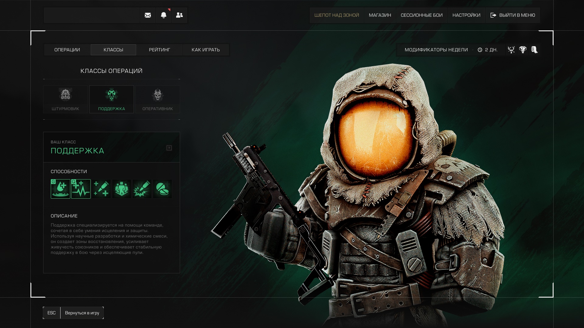 Перед началом Операции вам будет присвоен класс с уникальными способностями в зависимости от надетого костюма. Всего доступно три класса: