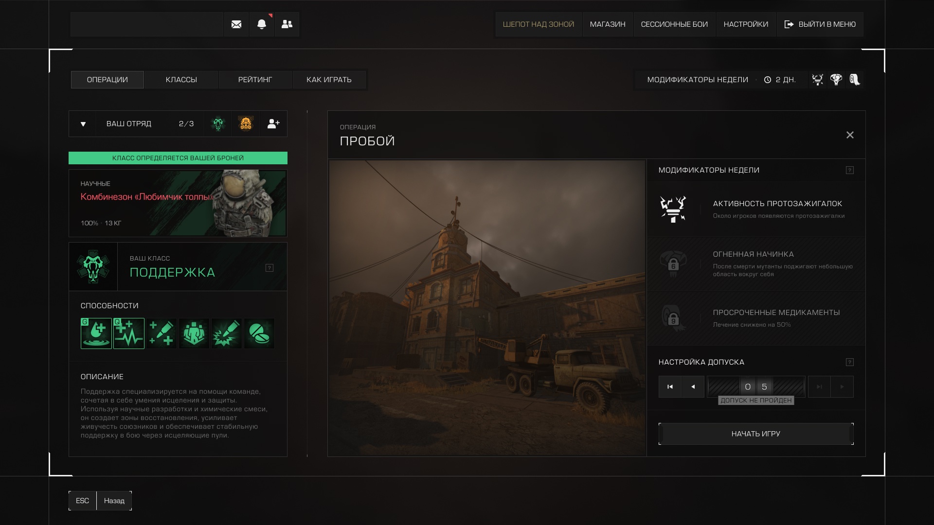Поэтому, чтобы практически каждый смог поиграть в Операции, и в то же время легенды Зоны испытали челлендж — мы создали систему Допусков.