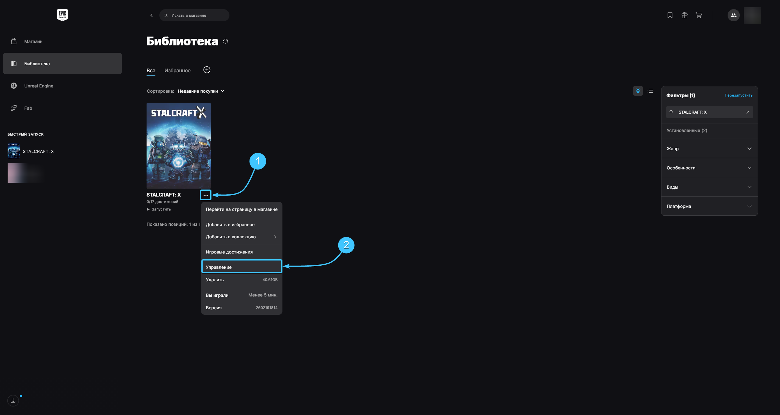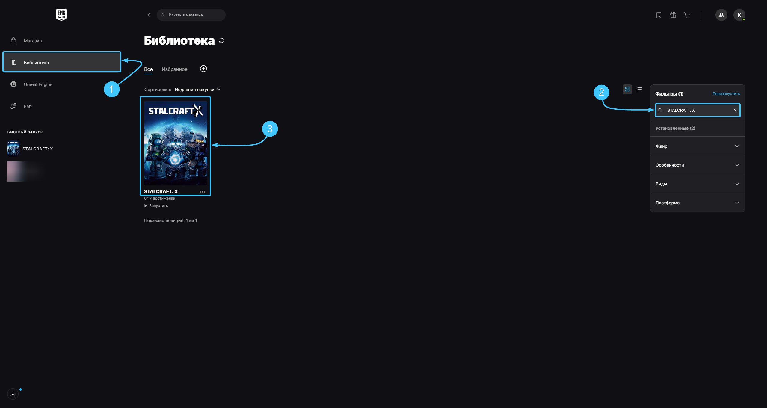 2. Слева откройте раздел под названием «Библиотека». В списке отыщите игру «STALCRAFT: X».