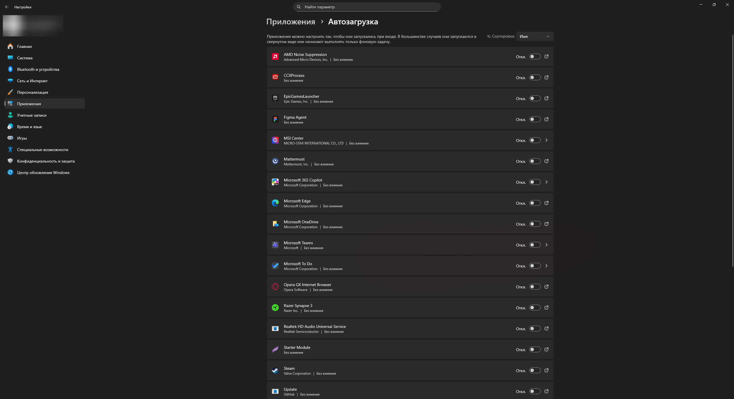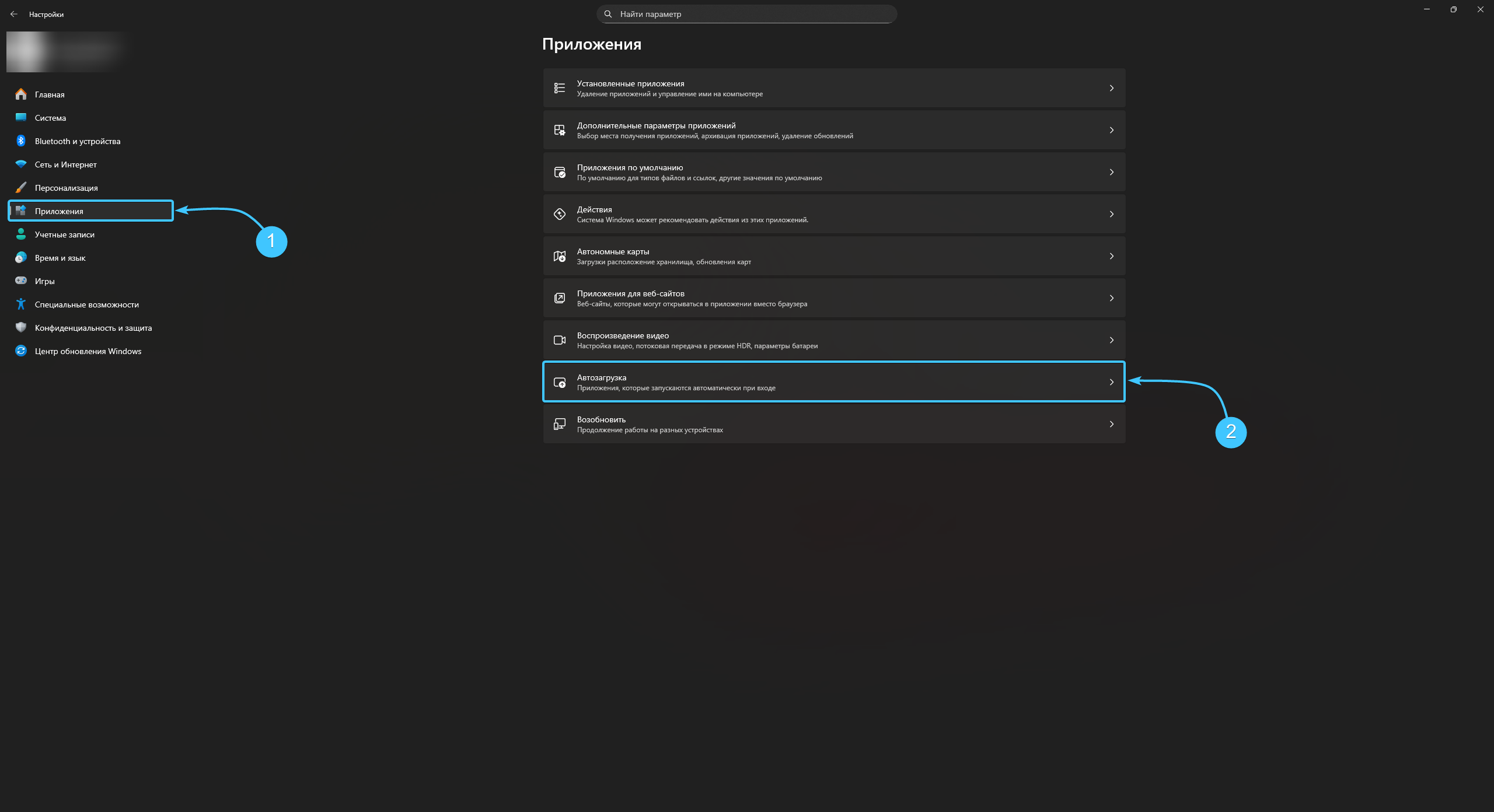 2. В списке откройте категорию «Приложения» и перейдите в раздел под названием «Автозагрузка».
