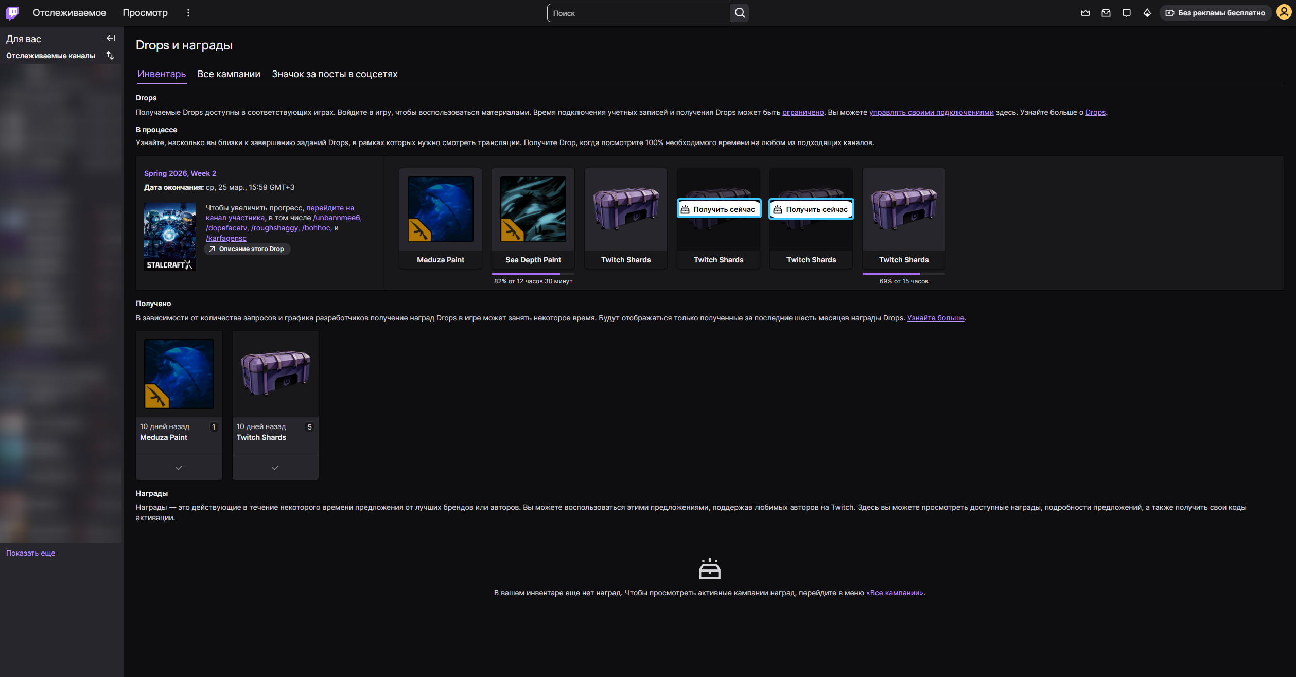 Награды «Twitch Drop» — это ценности, которые выдаются пользователям за просмотр определённого количества часов прямых трансляций по игре «STALCRAFT: X» на официальном сайте платформы «Twitch».