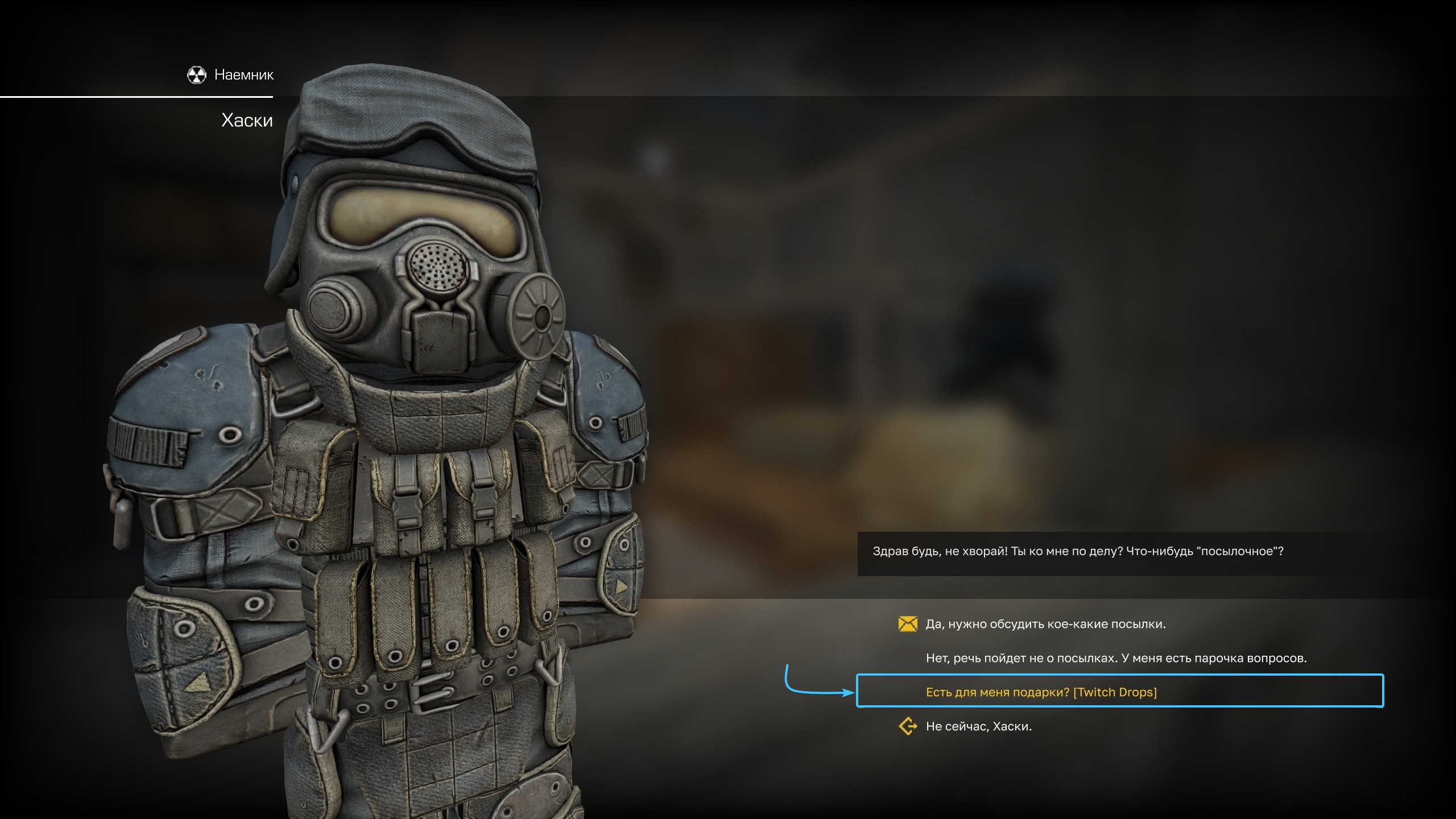 5. Начните взаимодействие с ним. В диалоге выберите вариант «Есть для меня подарки? [Twitch Drops]».
