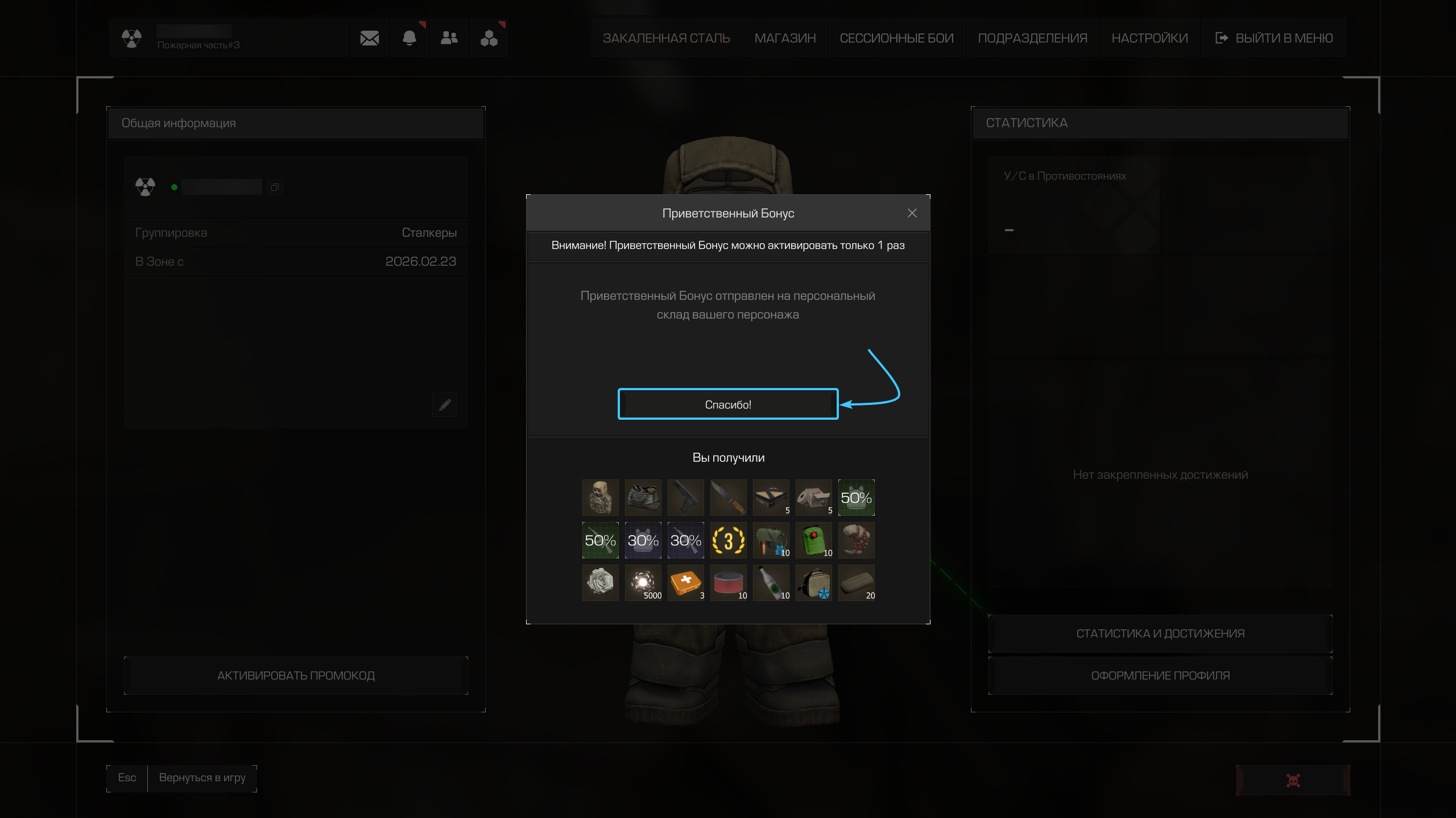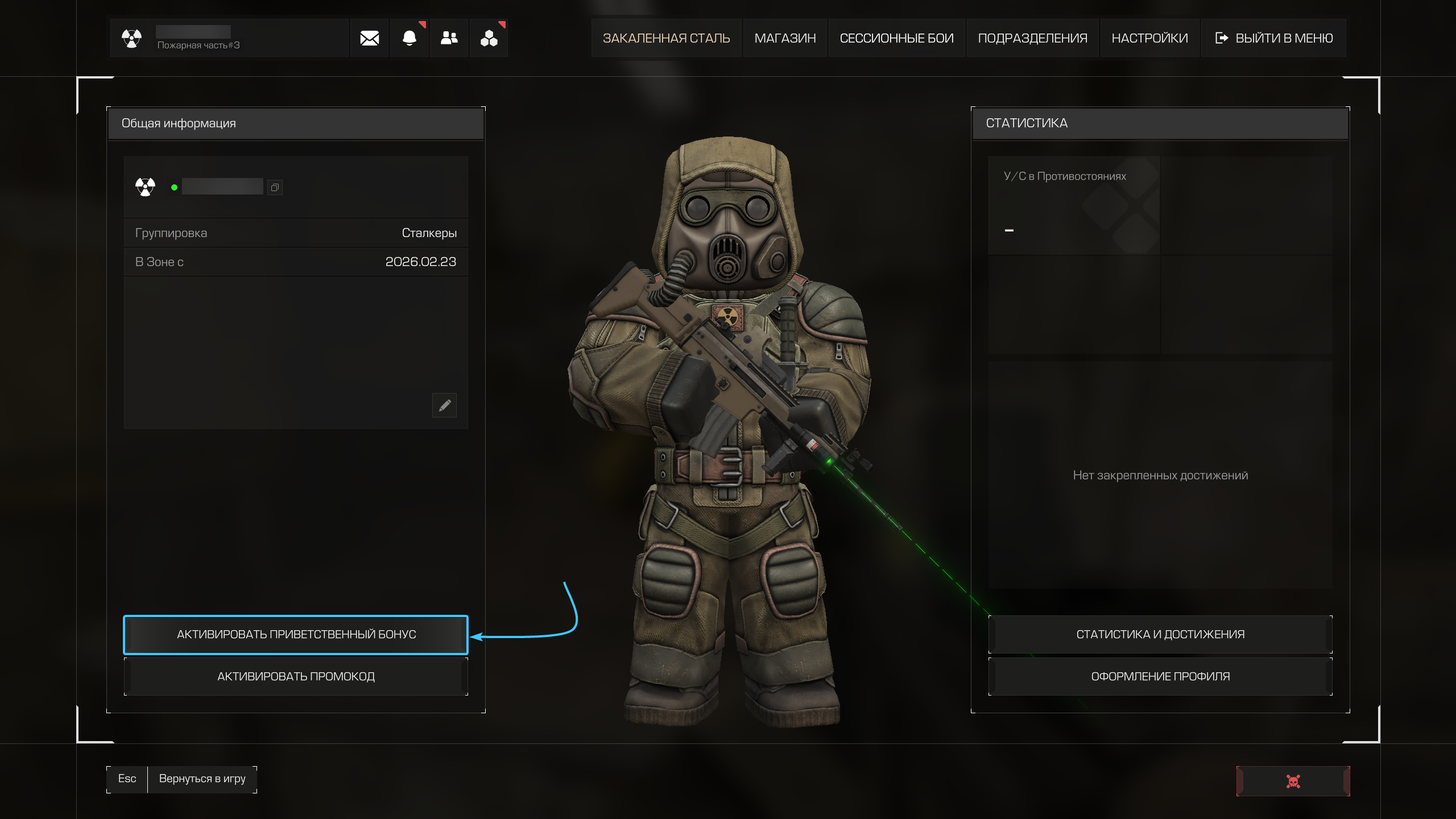 3. Откроется профиль персонажа. В левом нижнем углу нажмите «Активировать приветственный бонус».