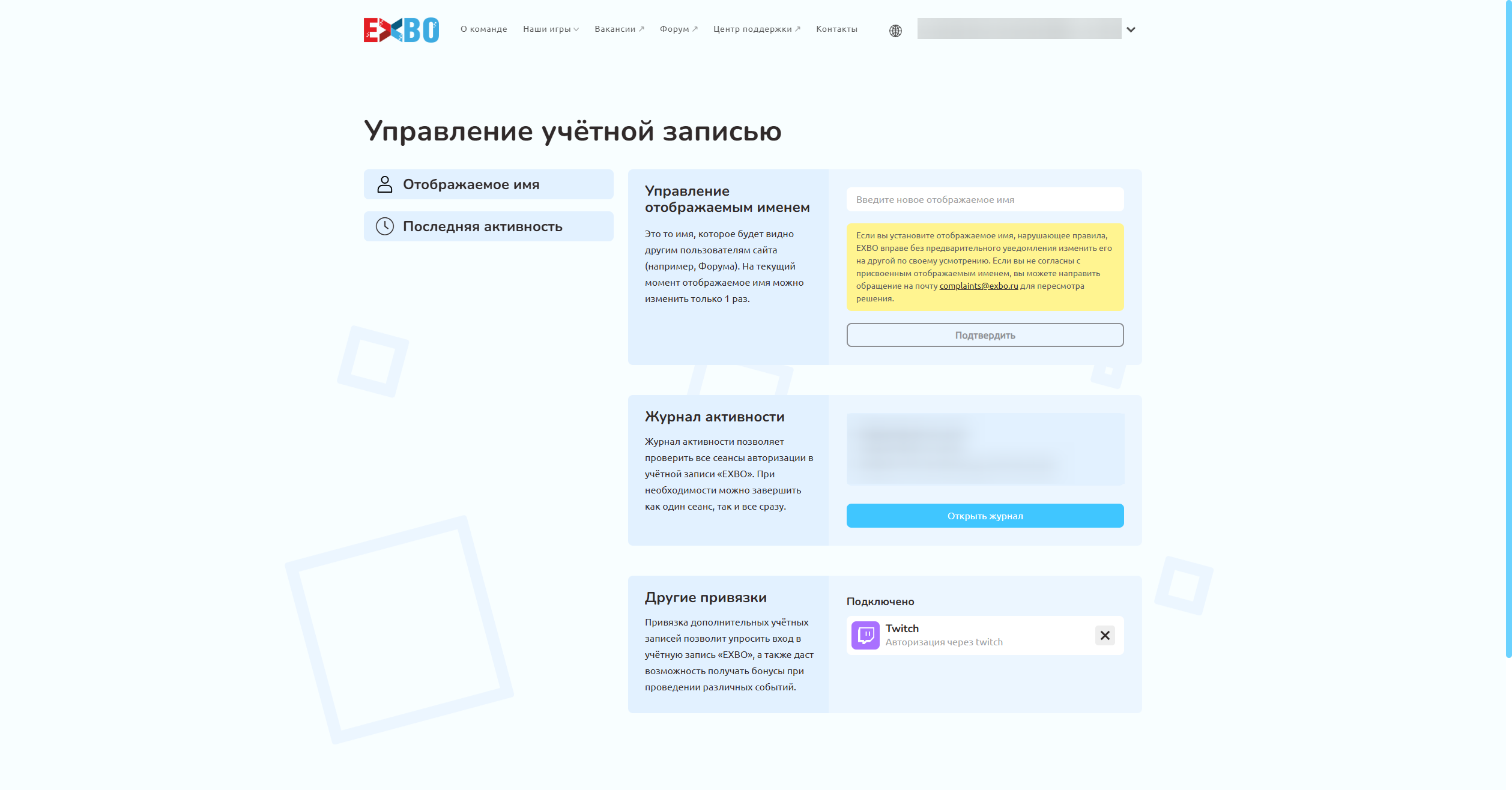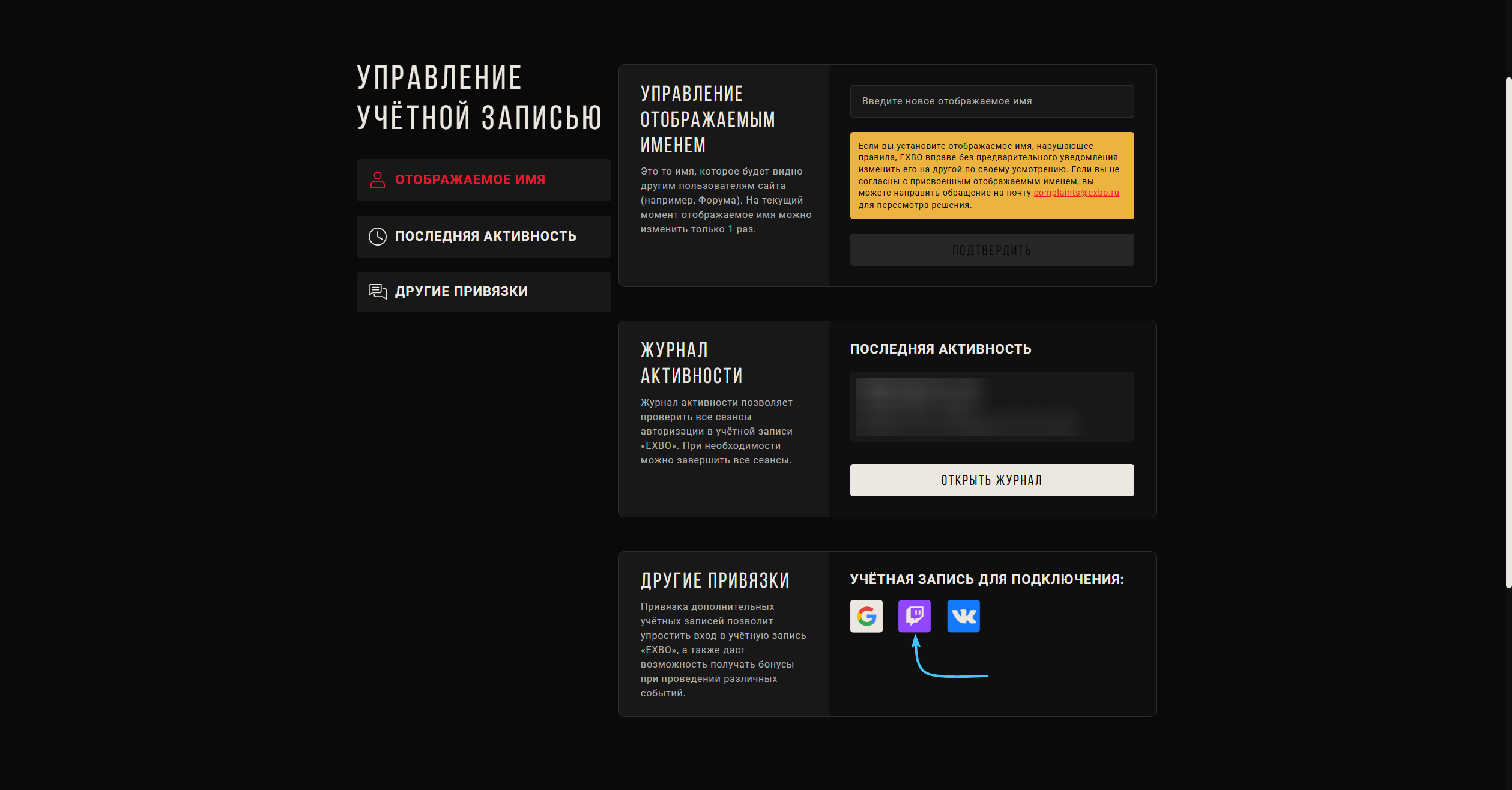 6. После этого учётная запись сервиса «Twitch» будет успешно привязана к учётной записи «EXBO».