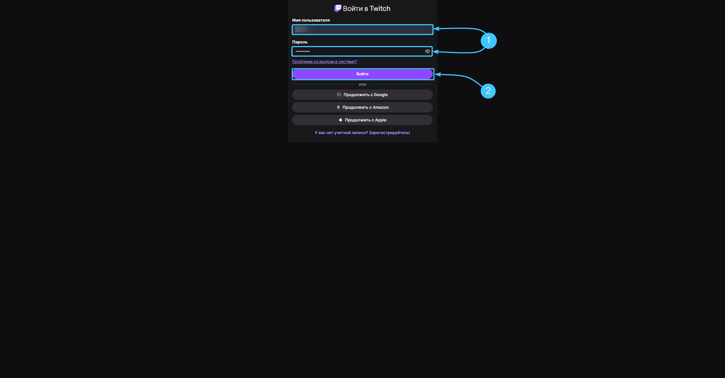 5. Откроется официальный сайт платформы «Twitch». Авторизуйтесь при помощи нужной учётной записи.
